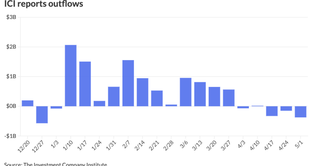 The Investment Company Institute reported outflows from municipal bond mutual funds for the week ending May 1, with investors pulling $375 million from funds following $151 million of outflows the week prior. This differs from LSEG Lipper, which reported