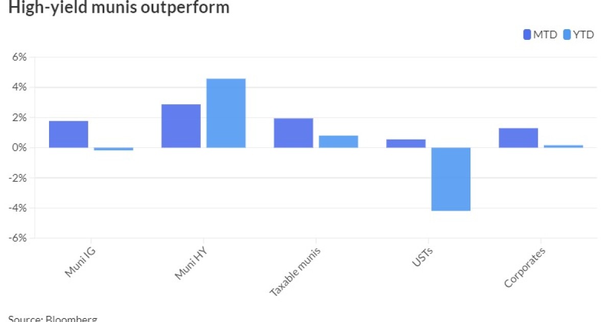 “That slightly stronger rally resulted in exempt [investment-grade munis] modest outperformance versus govies and corporates for the month-to-date,” they said.